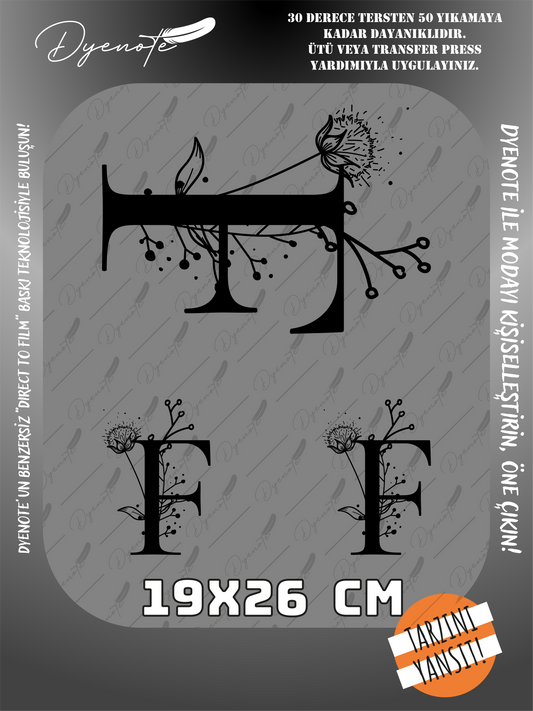 F Monogram Siyah Harf Seti - Ütüyle Yapıştır - 19x26 CM