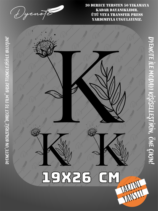 K Monogram Siyah Harf Seti - Ütüyle Yapıştır - 19x26 CM