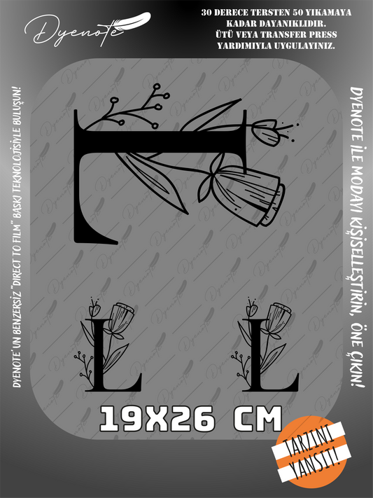 L Monogram Siyah Harf Seti - Ütüyle Yapıştır - 19x26 CM