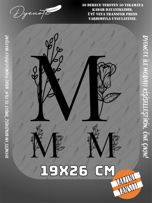 M Monogram Siyah Harf Seti - Ütüyle Yapıştır - 19x26 CM