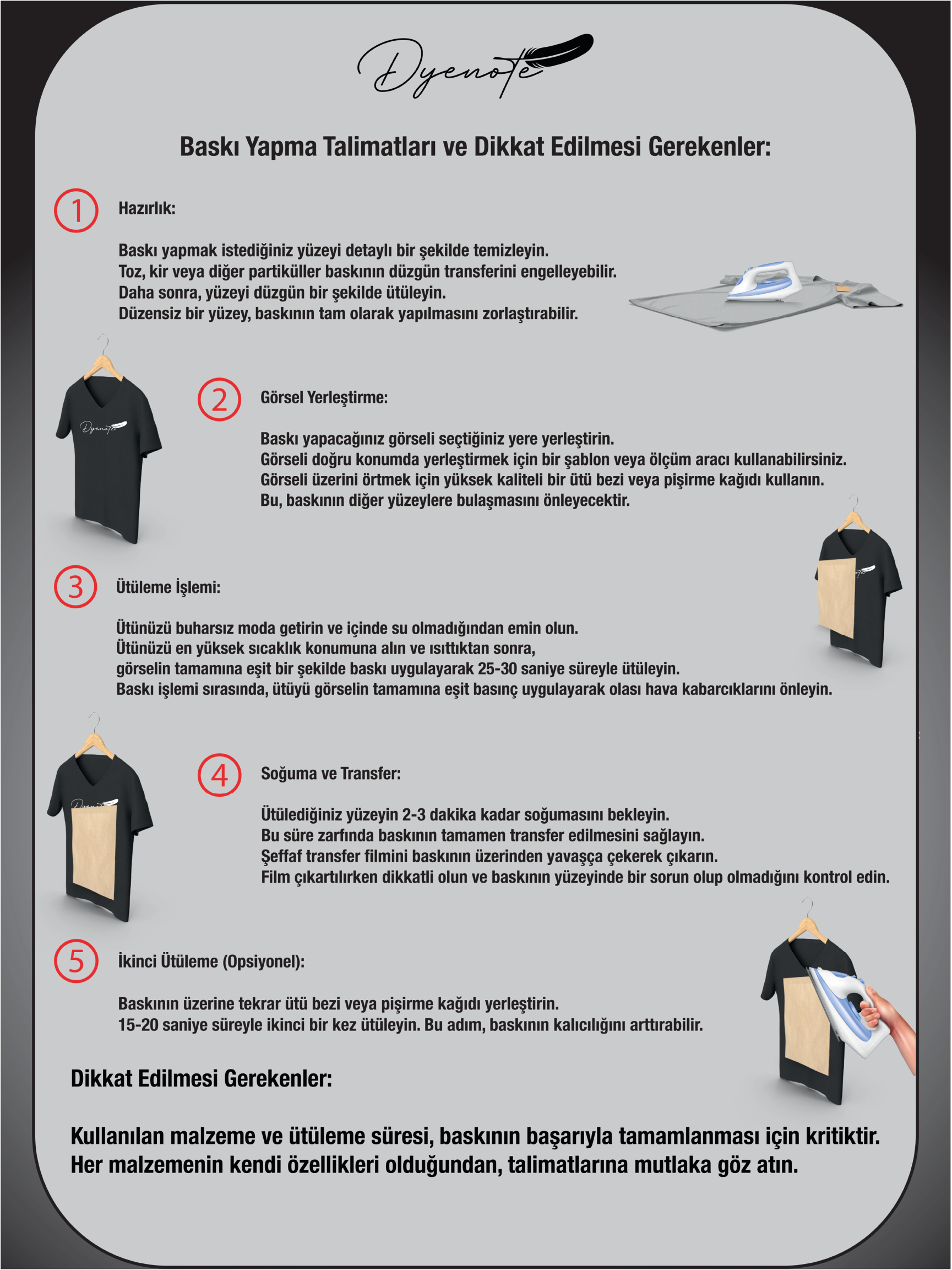Tüm Ürünlerimiz 160° sıcaklığa dayanıklı ürünlere uygulanabilir. Kumaş tipleri 30° derece sıcaklıkta 50 kez ters yıkamaya dayanıklıdır.